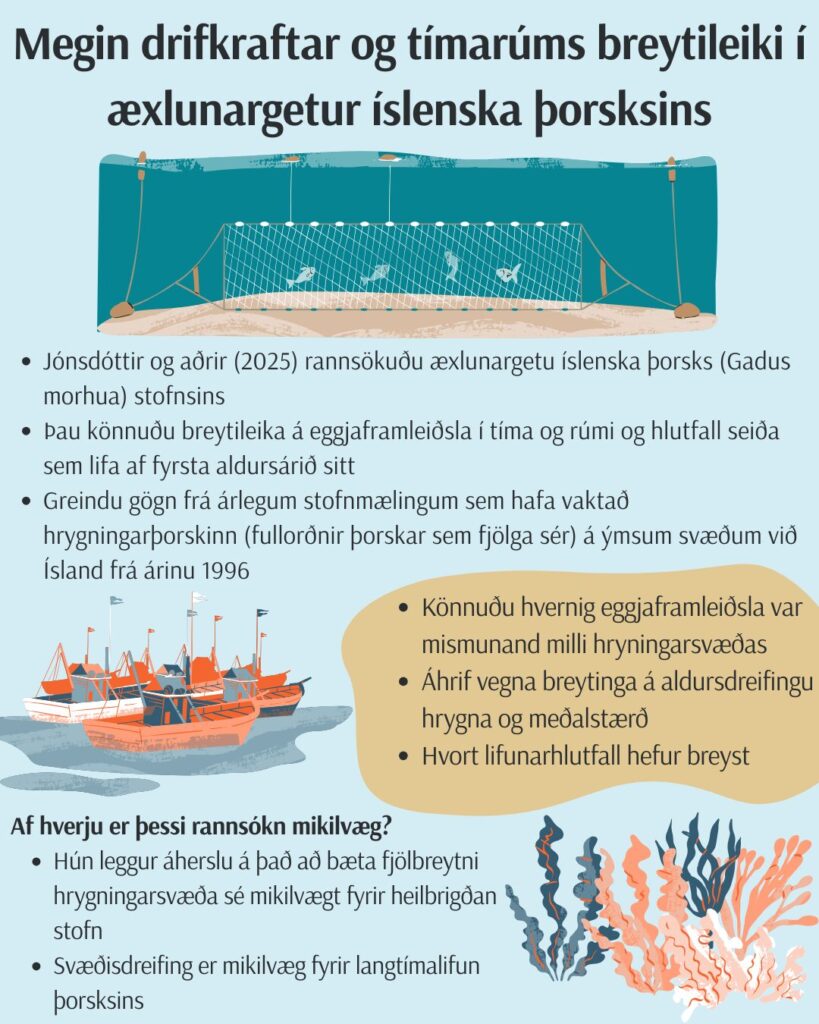 This past summer, Ingibjörg G. Jónsdóttir at the Marine and Freshwater Research Institute, along with her co-authors Jón Sólmundsson, Peter J. Wright, William Butler, and Pamela Woods, published a paper in the ICES Journal of Marine Science. The study, titled ‘Key drivers and spatio-temporal variation in the reproductive potential of Icelandic cod’, investigates the roles […]